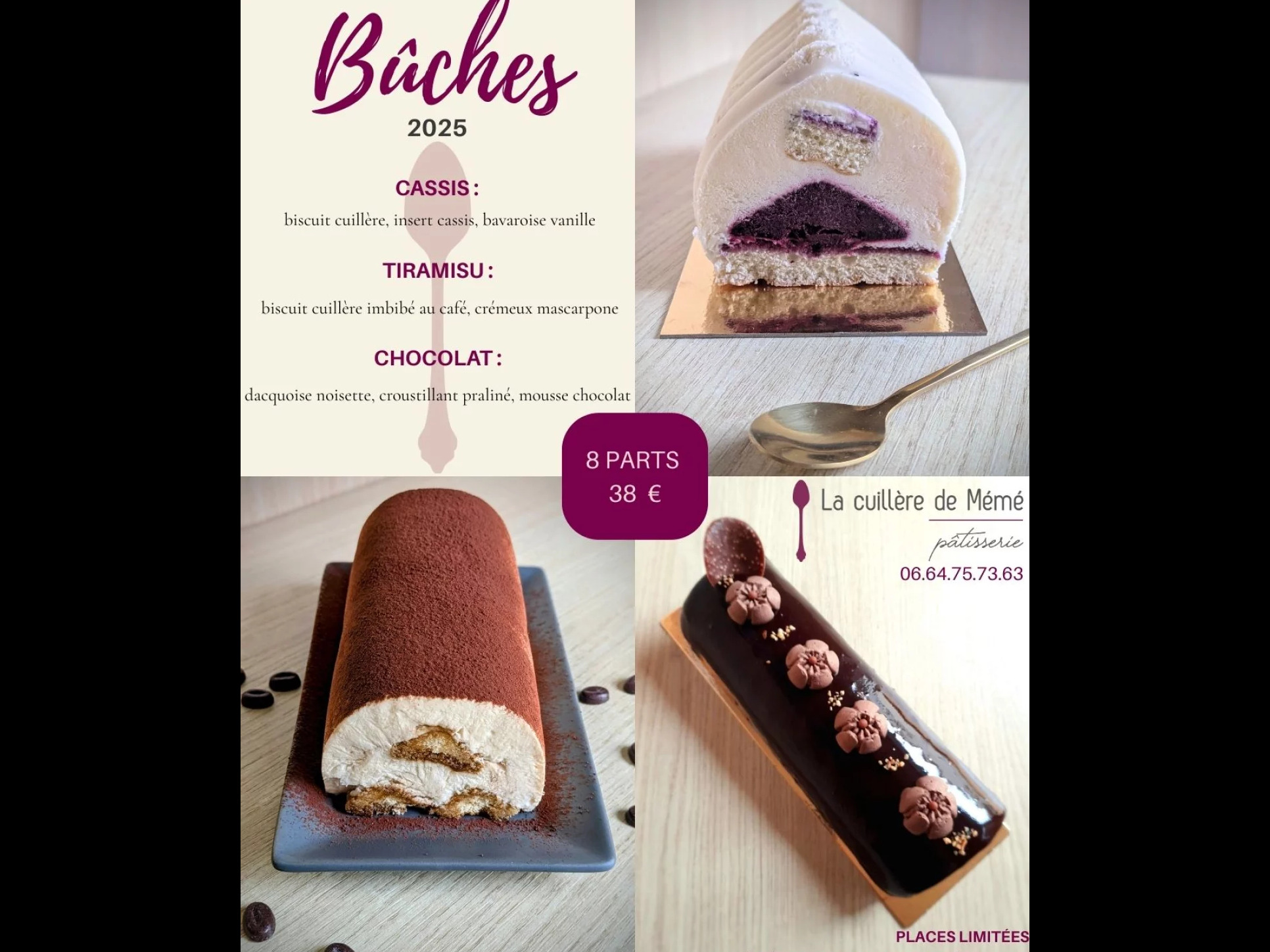 * Bûche cassis / vanille (biscuit cuillère, insert cassis, bavaroise vanille)